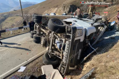 Երևան-Երասխ ճանապարհին ավազով բարձված բեռնատարը բախվել է երկաթե արգելապատնեշին և...