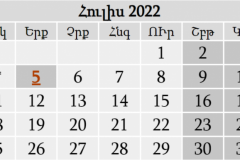 Հուլիսին կլինի 11 ոչ աշխատանքային օր