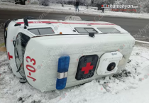 Գյումրիից հիվանդին Երևան տեղափոխող շտապօգնության ավտոմեքենան վթարի է ենթարկվել և հայտնվել ձնակույտում