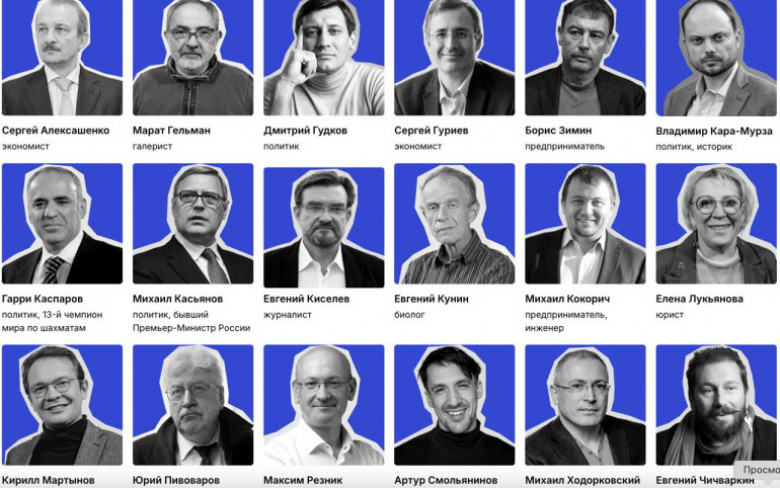 Ցուցակում են նաև Կենտրոնական բանկի նախկին փոխնախագահ Սերգեյ Ալեքսաշենկոն, տնտեսագետ Սերգեյ Գուրիևը, գործարարներ Բորիս Զիմինը, Եվգենի Չիչվարկինը և Միխայիլ Կոկորիչը, քաղաքագետ Եկատերինա Շուլմանը, պատկերասրահի սեփականատեր Մարատ Գելմանը, հրապարակախոս Վիկտոր Շենդերովիչը, լրագրողներ Եվգենի Կիսելյովը և Կիրիլ Մարտինովը, փաստաբան Ելենա Լուկյանովան, դերասան Արթուր Սմոլյանինովը, գիտնական Կոնստանտին Չումակովը, կենսաբան Եվգենի Կունինը և այլ անձինք։