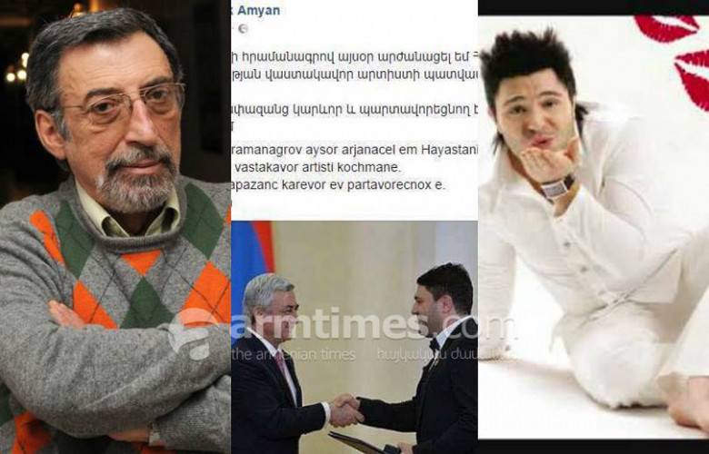ՀասարակությունՍերժ Սարգսյանը մայիսի 28-ին վաստակավոր արտիստի կոչումներ է տվել շոու բիզնեսի մի քանի ներկայացուցիչների: Հանրության կողմից առավել քննադատվեց երաժշտարվեստի բնագավառում ունեցած վաստակի համար երգիչ Ռազմիկ Ամյանին բաժին հասած վաստակավորի կոչումը: Armtimes.com-ը ՀՀ ժողովրդական արտիստ, պրոֆեսոր Նիկոլայ Ծատուրյանից հետաքրքրվեց, թե ի՞նչ կարծիք ունի հատկապես Ռազմիկ Ամյանին տրված վաստակավորի կոչման մասին:
