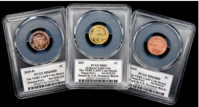 Բաց մի թողեքՑտեսություն, փոքրիկ ցենտ։ Վերջին ամերիկյան ցենտները, որոնք երբևէ հատվել են, աճուրդում վաճառվել են հսկայական 16.76 միլիոն դոլարով։ Դրանց թվում էին երեք մետաղադրամներից բաղկացած 232 հատուկ հավաքածու՝ սովորական Ֆիլադելֆիայի ցենտ, Դենվերի ցենտ և 24 կարատանոց ոսկե ցենտ, որոնք բոլորն էլ կրում էին խորհրդանշական Ω տառը, որը խորհրդանշում էր ցենտի երկդարյա պատմության ավարտը։