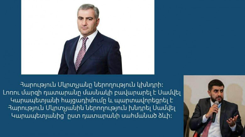 Լոռու մարզի դատարանը մասնակի բավարարել է մեր կողմից ներկայացված հայցադիմումը և պարտավորեցրել է Հարություն Մկրտչյանին վիրավորական արտահայտությունների համար ներողություն խնդրել Սամվել Կարապետյանից։