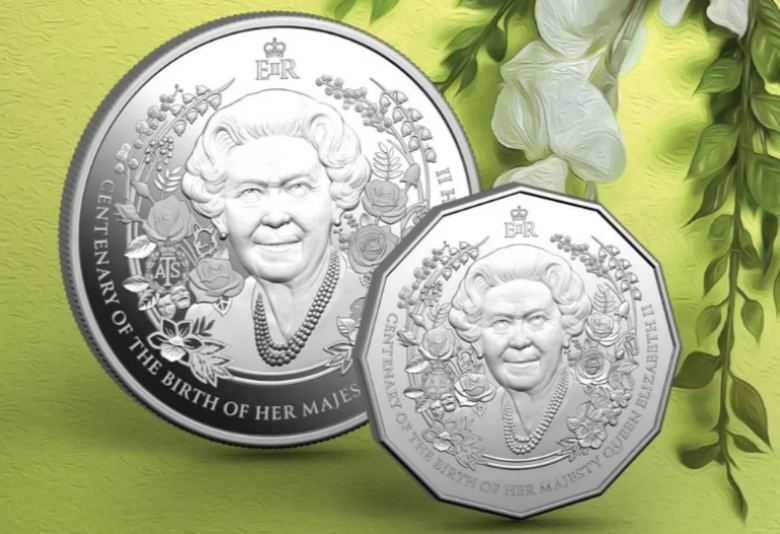Վախճանված թագուհու պատկերով մետաղադրամներ բրիտանական և ավստրալական դրամահատարաններում թողարկվել են նրա կառավարման ամբողջ ընթացքում, սակայն դրանցում Եղիսաբեթ II-ը ներկայացվել է պրոֆիլից։ Արծաթե նոր մետաղադրամի վրա թագուհին ներկայացված է ամբողջ դեմքով։