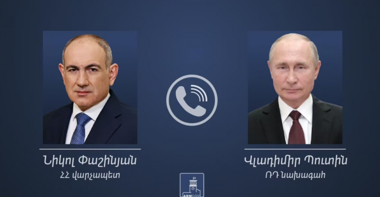Ռուսաստանի նախագահ Վլադիմիր Պուտինի և Հայաստանի վարչապետ Նիկոլ Փաշինյանի միջև հեռախոսազրույցը տեղի է ունեցել: Պաշտոնական հաղորդագրության համաձայն՝ զրույցը տեղի է ունեցել հայկական կողմի նախաձեռնությամբ։ «Քննարկվել են երկկողմ հարաբերությունների հետագա զարգացման տարբեր կողմեր, այդ թվում՝ համագործակցությունը առևտրա-տնտեսական, էներգետիկ և տրանսպորտային ոլորտներում», - նշել են Կրեմլից։
