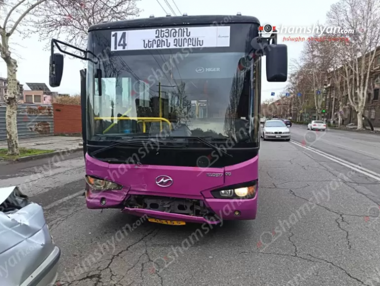 Շղթայական ավտովթար՝ Երևանում. բախվել են թիվ 14 երթուղին սպասարկող ավտոբուսը, «Toyota»-ն, «BMW»-ն և «Ford»-ը