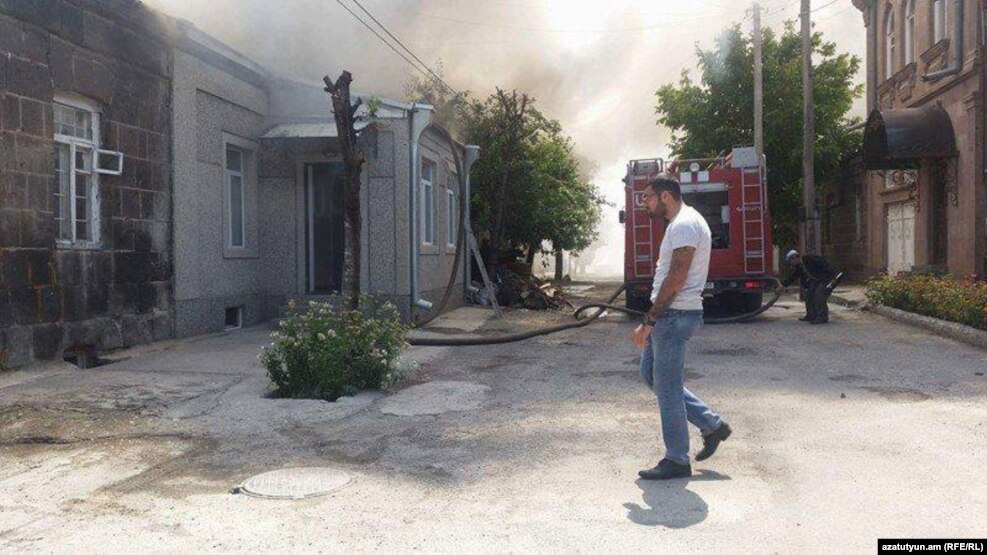 Հասարակություն• ԱԻՆ Շիրակի մարզային փրկարարական վարչության պետ Արթուր Կարապետյանն «Ազատության»-ը փոխանցեց, որ այսօր ժամը 13:10-ի ԱԻՆ ճգնաժամային կենտրոն ահազանգ է եղել, որ Գյումրիի Հակոբյան փողոցում երկու տան տանիք է այրվում: «Դեպքի վայր մեկնած հրշեջները սակայն նկատել են որ չորս տան տանիք է այրվում: Կրակը արագ տարածվել է, քանի որ տներն իրար շատ մոտ են գտնվել», - ասաց Կարապետյանը՝ ընդգծելով, որ ընդհանուր առմամբ այրվել է յոթ տան տանիք, երկու տուն այրվել է գույքի հետ միասին: «Հրդեհից վնասվել է շուրջ 1000 քառակուսի մետր: Դեպքի վայրում ութ մարտական հաշվարկ տեխնիկա է աշխատում: Այս պահին դեռ հրդեհաշիջման աշխատանքները շարունակվում են», - ասաց Շիրակի մարզային փրկարարական վարչության պետը։