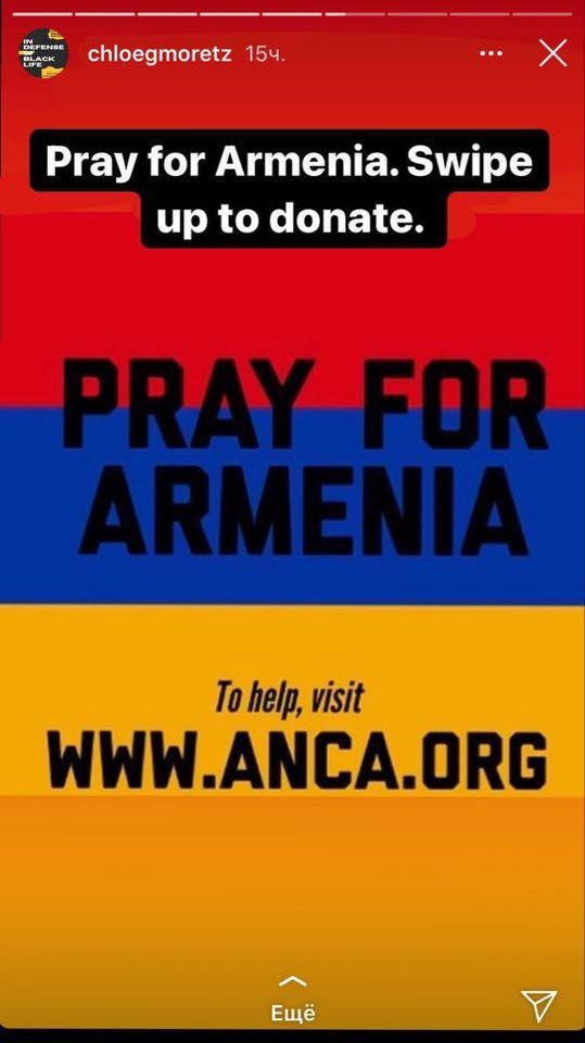 Life«Եթե ես մնամ», «Ստի գրկում» և մի շարք այլ ֆիլմերից հայտնի ամերիկացի դերասանուհի, մոդել Քլոե Մորեցն Ինստագրամի իր էջի սթորի բաժնում հրապարակում է արել` իր աջակցությունը հայտնելով Հայաստանին: