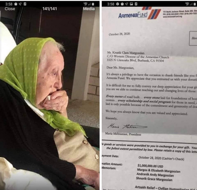 103 տարեկան Քնարիկ Մարկոսյանը (Պըրպենք, Ամերիկա) 1 միլիոն դոլար է նվիրել Հայաստան համահայկական հիմնադրամին։