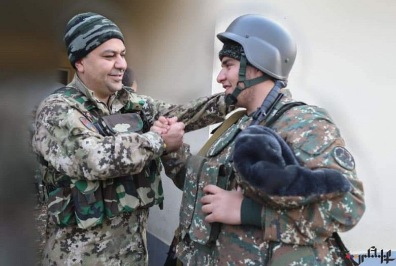 Մարտական հերթապահության մեկնելուց առաջ, հայր ու որդի Արթուր և Արտյոմ Վանեցյաններ