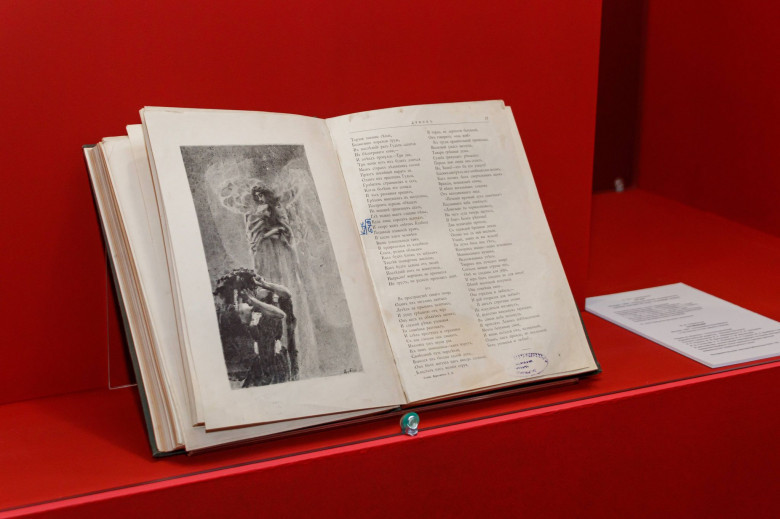 Առաջին անգամ ցուցադրվեց նաև Մ. Լերմոնտովի մահվան 50-րդ տարելիցին հրատարակված «Երկերի ժողովածուն», որի համար նկարազարդումներ է կատարել Վրուբելը, Այվազովսկին և ռուս լավագույն նկարիչներ Սուրիկովը, Շիշկինը, Ռեպինը, Վասնեցով եղբայրները, Պոլենովը և այլոք։ Ցուցահանդեսը բաց է լինելու մինչև օգոստոսի 20-ը։