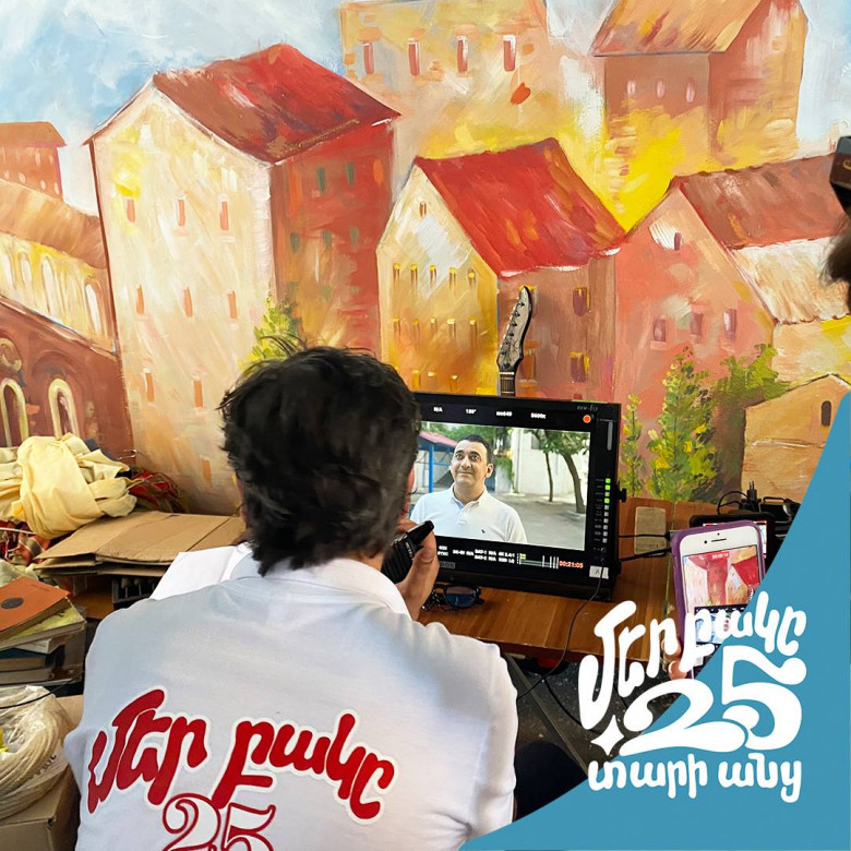Պարոն Ղազարյանին խնդրեցինք նաև համեմատություն կատարել 25 տարի առաջ և այսօր «Մեր բակի» միջև, մթնոլորտը փոխվե՞լ է, եթե այո, ապա ինչպե՞ս․ «Մթնոլորտի մասին ասեմ, որ էն օրերին ամեն ինչ իր ժամանակին էր համահունչ, հիմա էլ՝ մեր օրերին: Դե, էս ջահելներն էլ եկել են, իրենք մեզանից են սովորում, մենք էլ՝ իրենցից: Իսկ ամենալավ մթնոլորտը կլինի այն ժամանակ, երբ ֆիլմն էկրան բարձրանա, ու մենք էլ կարողանանք կիսվել մեր հանդիսատեսի հետ»: