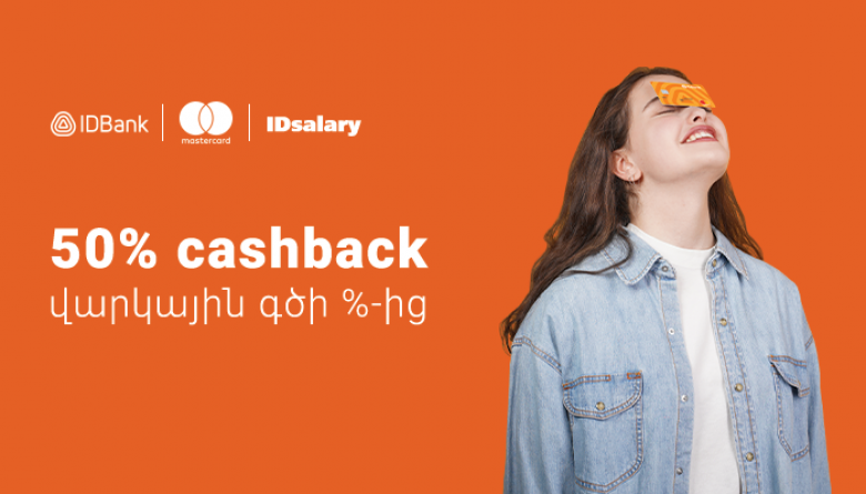 ՀասարակությունՍույն թվականի հուլիսի 1-ից մինչև հոկտեմբերի 1-ը IDSalary փաթեթի շրջանակում պատվիրեք IDBank-ի Mastercard Standard և Mastercard Gold քարտեր և Ձեր՝ վարկային գծի դիմաց վճարած տոկոսագումարներից կստանաք 50% քեշբեք: