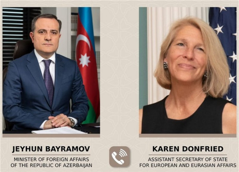 ԱշխարհԱդրբեջանի արտգործնախարար Ջեյհուն Բայրամովը և ԱՄՆ պետքարտուղարի Եվրոպայի և Եվրասիայի հարցերով օգնական Կարեն Դոնֆրիդը հեռախոսազրույց են ունեցել։ Այս մասին հայտնում են Ադրբեջանի ԱԳՆ մամուլի ծառայությունից․ տեղեկացնում են ադրբեջանական ԶԼՄ-ները։