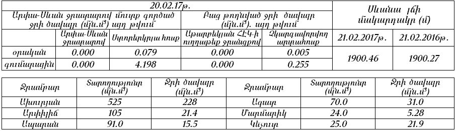 ՀՀ ԳԵՏԵՐԻ, ԼՃԵՐԻ ԵՎ ՋՐԱՄԲԱՐՆԵՐԻ ՎԻՃԱԿԸ: ՏՎՅԱԼՆԵՐ ՍԵՎԱՆԱ ԼՃԻ ՎԵՐԱԲԵՐՅԱԼ.