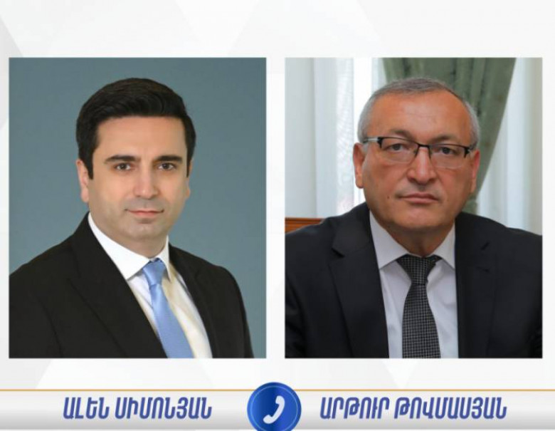 Հայաստանի Հանրապետության Ազգային ժողովի նախագահ Ալեն Սիմոնյանը հեռախոսազրույց է ունեցել Արցախի Ազգային ժողովի նախագահ Արթուր Թովմասյանի հետ։ Հայտնում են ԱԺ-ից: