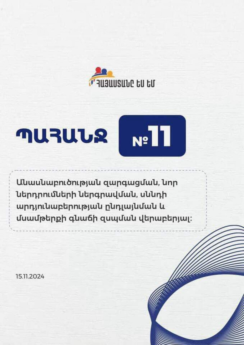 «Հայաստանը ես եմ» նախաձեռնությունը իր 11-րդ առաջարկ-պահանջն է ներկայացրել ՀՀ կառավարությանը, պատկան մարմիններին։ Առաջարկ-պահանջում ասվում է.