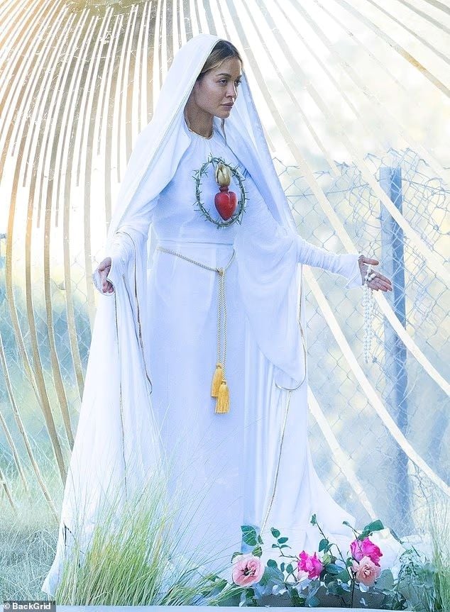 Самое популяроне34-летняя певица Рита Ора предстала в неожиданном и дерзком образе во время съёмки в Лос-Анджелесе. Артистка облачилась в белоснежные свободные одежды и длинную фату до пола, держа в руках чётки и позируя с молитвенно сложенными руками, пишет Daily Mail.
