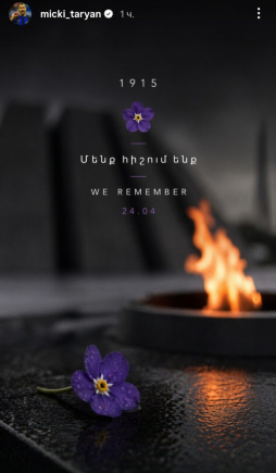 Он разместил фотографию вечного огня мемориального комплекса Цицернакаберд и символического цветка незабудки. К изображению футболист добавил подпись: «1915 – Мы помним, WE REMEMBER, 24.04».