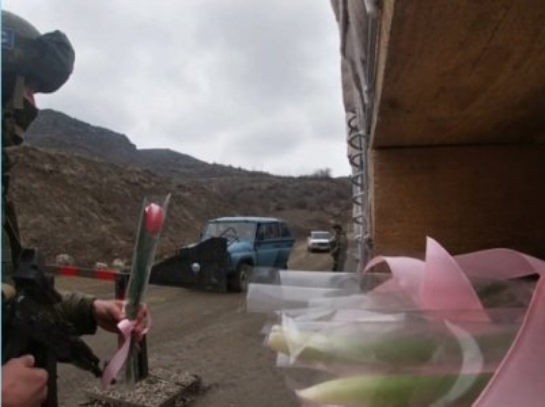 ОбществоВо время выполнения задач по обеспечению безопасности движения гражданского автотранспорта по Лачинскому коридору, российские военнослужащие на наблюдательных постах подарили цветы жительницам Нагорного Карабаха, а также поздравили их с наступающим Международным женским днем. Об этом сообщает Минобороны России.