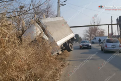 Ազատաշեն գյուղի ճանապարհին բեռնատարը կիսակողաշրջվել և հայտնվել է ջրատարում