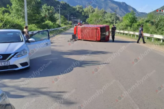 Կոտայքում բեռնատարը կոտրել է բաժանարար գոտում տեղադրված երկաթե արգելապատնեշները