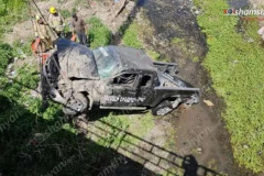 Արարատում Nissan-ը բախվել է երկաթե արգելապատնեշին և մոտ 7 մետրից ընկել գետը. կա ...
