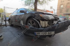 Երևանում «Toyota»-ն բախվել է բազալտե եզրաքարին և հայտնվել մայթին