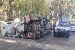 Երևանում ցեմենտատարը կողաշրջվել է. վարորդին դուրս են բերել ավտոմեքենայից՝ օգտագո...