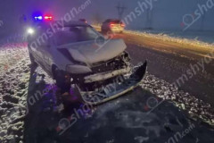 Կոտայքում բեռնատարը կոտրել է բաժանարար գոտում տեղադրված երկաթե արգելապատնեշները