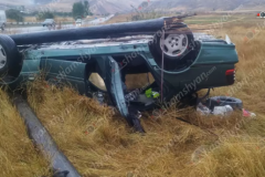 Լոռիում «Mercedes»-ը բախվել է էլեկտրասյանը, կոտրել այն և գլխիվայր հայտնվել դաշտո...