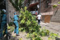 Մատենադարանի հարևանությամբ հսկայական ծառի ճյուղերը կոտրվել են, մեկը մխրճվել է ավ...