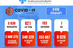 Հաստատվել է կորոնավիրուսի 621 նոր դեպք, ապաքինվել է 103 քաղաքացի