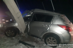 Արմավիր-Գյումրի ավտոճանապարհին մեքենան դուրս է եկել ճանապարհից ու բախվել բետոնե ...