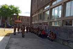 Դիլիջանի 38/8 ընտրատեղամասի դիմաց քաղաքացիական անձը զինվորներին ուղղորդում է դեպ...