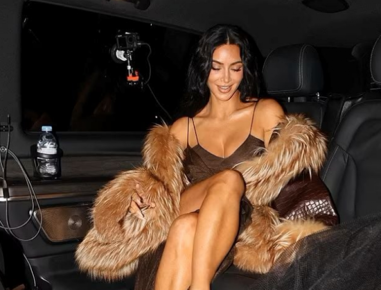 Մուգ շագանակագույն մինի զգեստը՝ թափանցիկ ներդիրներով, ընդգծում էր նրա ապշեցուցիչ կազմվածքը։ Քարդաշյանն իր կերպարը լրացրել է մորթե զարդանախշերով վերարկուով։ Քիմը չափազանց սիրված էր, նա ինքնագրեր էր բաժանում ռեստորանի ելքի մոտ իրեն սպասող երկրպագուներին։