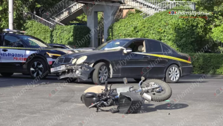 Երևանում բախվել են «Mercedes»-ն ու մոտոցիկլը. մոտոցիկլավարն ու ուղևորը, ովքեր մայր ու անչափահաս որդի են, տեղափոխվել են հիվանդանոց