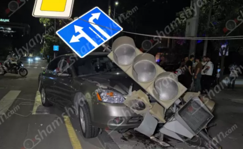 Երևանում բախվել են «Fiat»-ը և «Nissan»-ը․ վերջինը կոտրել է խաչմերուկը կարգավորող լուսակիրը