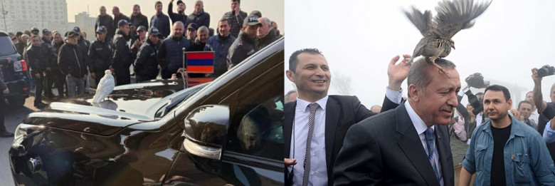 Ի դեպ, այս տեխնոլոգիան, որից օգտվել են իշխանության խորհրդատուները, նորություն չէ։ Այն թուրքական քարոզչամեքենայի դասական հնարք է, որը վերջին տասնամյակներում բազմիցս կիրառվել է Թուրքիայում՝ իշխանության քաղաքական օրակարգը «սրբացնելու» և առաջնորդին «Աստծո ընտրյալ» կերպարով ներկայացնելու նպատակով։ Օրինակ՝ 2015 թ. օգոստոսի 16-ին Ռիզեում մզկիթի բացման արարողության ժամանակ Էրդողանի գլխին «զարմանալի հանգամանքներում» հայտնված թռչունը թուրքական իշխանամերձ մամուլը նույն պահին ներկայացրեց որպես «Աստծո նշան»։ Այդ ժամանակ Էրդողանը գտնվում էր իր քաղաքական կենսագրության ամենացածր վարկանիշի փուլում, իսկ ընդդիմության ու հասարակական գործիչների դեմ բռնաճնշումները հասել էին գագաթնակետին։ «Աղավնու հրաշքը» մատուցվեց որպես «վերից ուղերձ», ինչը հանրային ընկալման վրա իրական ազդեցություն ունեցավ։