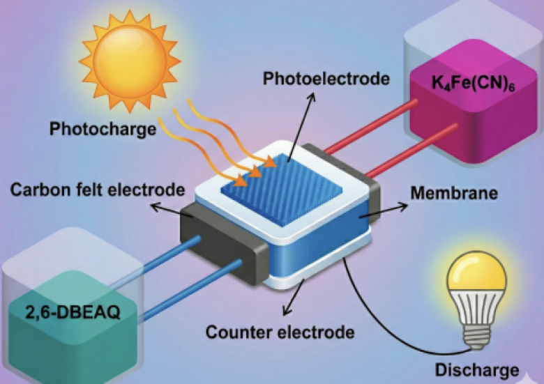 Նանկինի տեխնոլոգիական համալսարանի մի թիմ բարելավել է SRFB բաղադրիչների քիմիական համատեղելիությունը։ Որպես լուսակատոդ օգտագործվել են առևտրային առումով մատչելի եռամորֆ սիլիցիումային արևային մարտկոցներ (3jn-a-Si), որոնք կտրտված են 2x2 սմ չափերով մոդուլների՝ չժանգոտվող պողպատե հիմքով և ինդիումի անագի օքսիդի ծածկույթով։ Փորձարկման ընթացքում մարտկոցը լիցքավորվել է արևի լույսը մոդելավորող քսենոնային լամպով։ Համակարգը դիմացել է ավելի քան 10 լիցքավորման-լիցքաթափման ցիկլերի և ցույց է տվել արևային էներգիայի էլեկտրաէներգիայի 4.2% փոխակերպման արդյունավետություն։ Այս զարգացումը նոր հնարավորություններ են բացում էներգիայի արևային-քիմիական ուղղակի կուտակման տեխնոլոգիաների զարգացման համար։