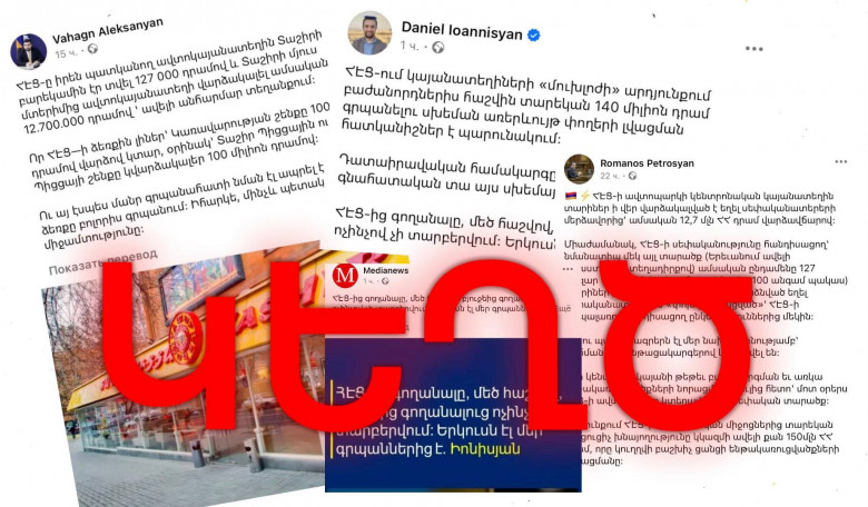 Պետական բյուջեից սնվող ռեսուրսները տարածում են կեղծ տեղեկություններ, նմանատիպ ծախսերը սակագնի մեջ ներառված չեն