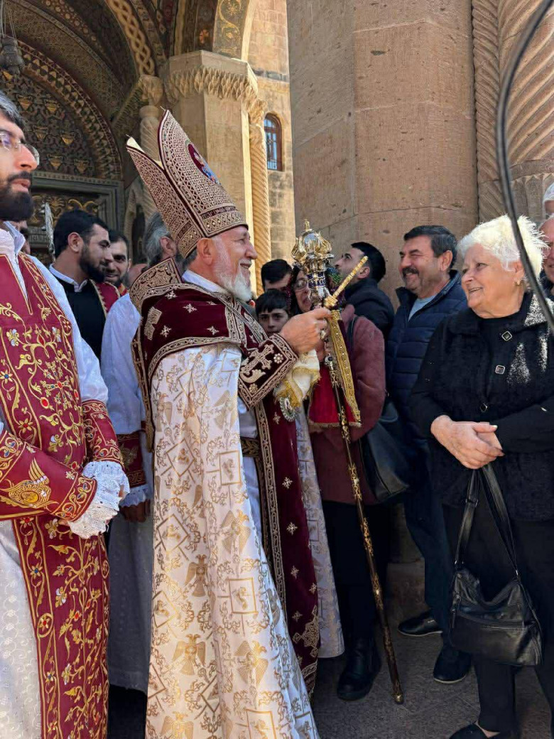 Պատարագից հետո Մայր Աթոռի բակում Հայկ Նահապետյանը զրուցեց քաղաքացիների հետ, որոնք իրենց դժգոհությունն էին հայտնում Ամենայն Հայոց Կաթողիկոսի դեմ իշխանությունների վերաբերմունքի հետ կապված եւ աջակցություն հայտնում Վեհափառին: