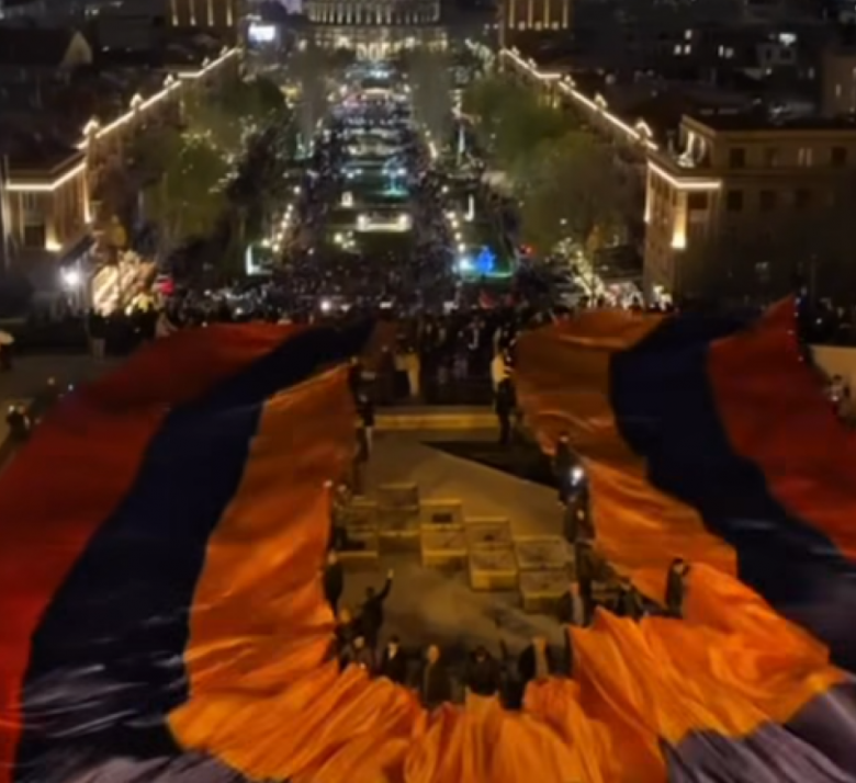 Փոփոխության քամին, այս մասին գրել է «Ուժեղ Հայաստան» կուսակցության անդամ Նարեկ Կարապետյանը և տեսանյութ է հրապարակել Կասկադից, որտեղ հանրահավաքից ու քայլերթից հետո կուսակցության անդամները ծածանում են Հայաստանի դրոշը։