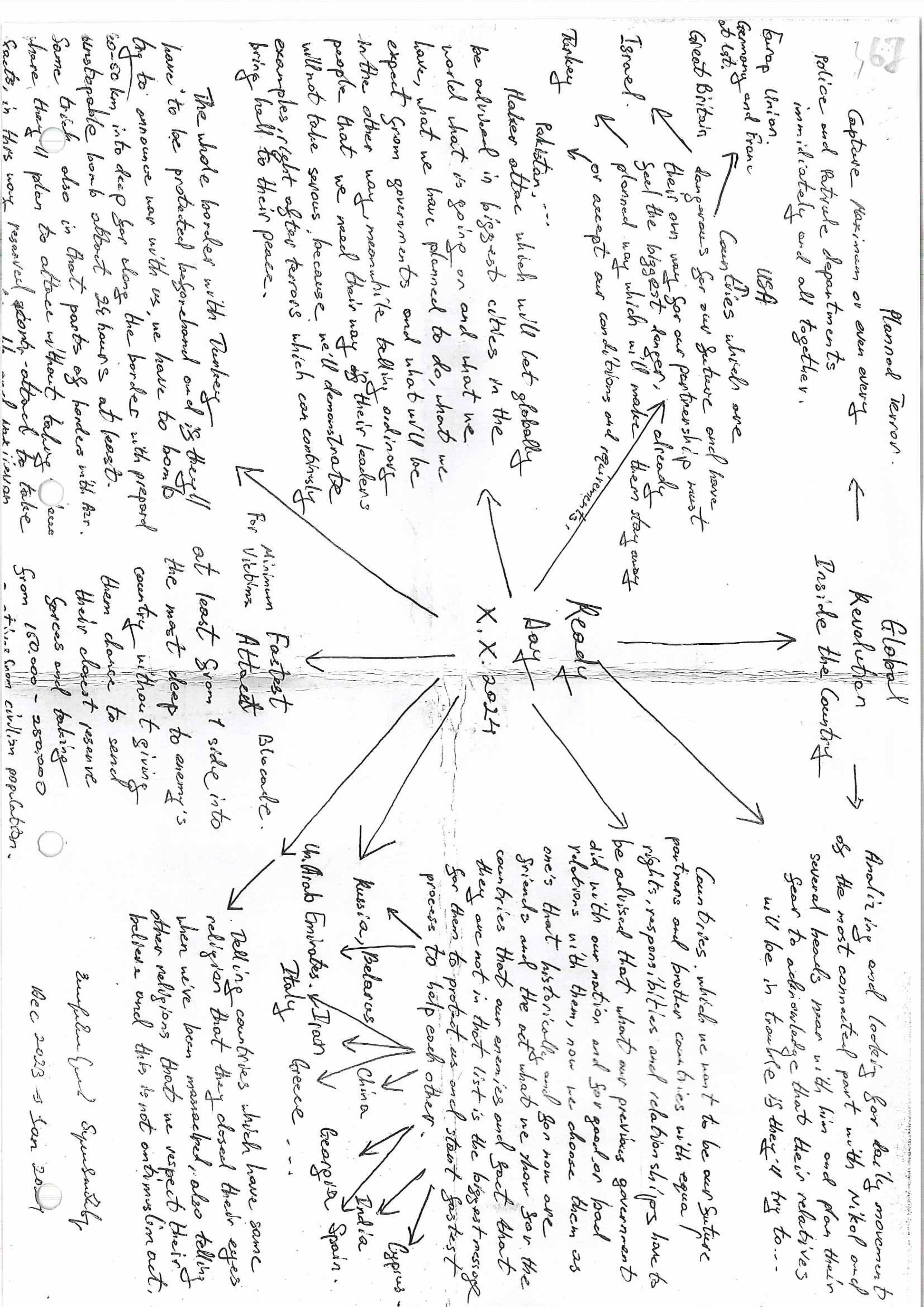 «Առաջին հերթին դա այսպես կոչված ձեռագիր «ահաբեկչական պլանն» է, որ ո’չ ձեռագրաբանական քննության է ենթարկվել, ո’չ որևէ ողջամիտ վերլուծության, բայց ՔԿ ղեկավարի կողմից հանրությանը ներկայացվել է իբրև Բագրատ Սրբազանի ձեռքով գրված ծրագիր։ Այնտեղ մասնավորապես առկա են այնպիսի անհեթեթ մտքեր ինչպիսիք օրինակ՝ որ «անհրաժեշտ է ներխուժել թշնամի երկիր և գերի վերցնել 150.000-250.000 քաղաքացիական անձ։ Մենք հրապարակում ենք այդ անգլերեն «ծրագիրը» և դա հայտնաբերելու կադրերը՝ թողնելով, որ հանրությունն ինքը դատի՝ կարո՞ղ էր արդյոք Բագրատ Սրբազանը կամ նրա համախոհներից որևէ մեկը շարադրած լինել նման տեքստ թե ոչ։» - հայտնեց պաշտպան Հովհաննես Խուդոյանը։