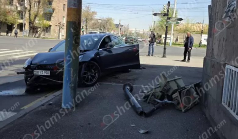 «Tesla»-ն Էրեբունի-Աթոյան խաչմերուկում կոտրել է երթևեկությունը կարգավորող լուսակիրը