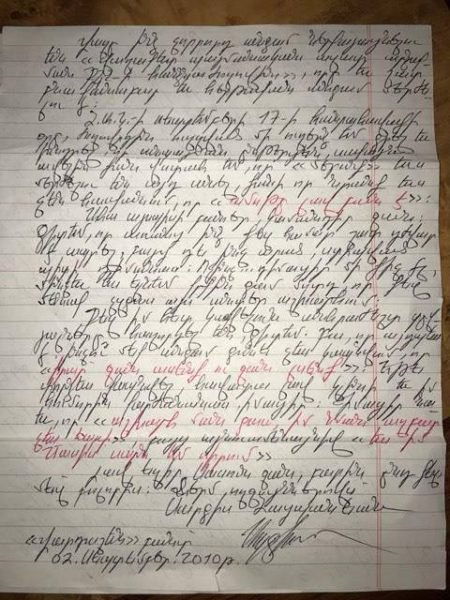 «Արցախի հերոս` Սասուն Միքայելյանին Սիրելի հրամանատար Ողջույններս… հույս ունեմ, որ առողջությանդ հետեւում ես: Խնդրում եմ իմ բաժին մածուններն ուտես, որ ըստ արժանվույն` գյուղից եկած, հալած կաթնամթերքով սնվել կարողանաս, ու ինձ միշտ հիշես, ես իմանամ, որ այդ իմ բաժին մածունի շնորհիվ է, որ առողջությունդ պահպանում ես դեռ: Տեսնում ես, որ ինչքան էլ դեռ աղբարի մնացորդներ լինեն մոտս, ինչպես դու քո մարմնում բազմաթիվ բեկորներ ունես, այնուամենայնիվ հումորը չի պակասել, այլ քանի որ քեզնից հեռու ընկա, այդ ավելացել է: Հույս ունեմ, որ իմ պատմած բոլոր անեկդոտները հիշում ես, հատկապես Գագիկ Ջհանգիրյանի մասով պատմածս, որ ծեր մարդը իր կնկան ասում է. «Երբ հիշում եմ, որ մեր ամուսնացած ժամանակ դու կույս չես եղել, բեյնիս ղափաղը թռնում է»: Ահա, եւ ճիշտ այդպես, իմ «Վարդաշեն» վերադարձիս ի վեր, գրեթե ամեն օր իմ բեյնիս ղափաղն էլ է թռնում, իմանաս: Մուշեղին «Վարդաշեն»-ում տեսել եմ շատ ավելի քիչ, հավատա, քան Բարաք Օբամային հեռուստացույցով: Քանի որ, ինչպես դու էիր սիրում մշտապես կրկնել, թե «մարդ չեն դառնում, մարդ ծնվում են», ես էլ անսալով ասածներիդ, մի կերպ «յան» տված ապրում եմ: Երբ մի գեղեցիկ օր, բանտից դուրս գալու լինենք, տեսնելու ես, որ հատկապես «քաղբանտարկյալների իրական վիճակի» մասին ինչ եմ անելու եւ զարմանաս: Դե, եթե այսպիսիններն են, մեր երազած իշխանություններից հետո «պետական պաշտոնյաներ դառնալու» ավելի լավ է չդառնան հարկարծ, սրանք մարդ չեն, մաաարդ, հասկանում ես, չէ՞: Ես, իմ, «դատապարտյալների հիվանդանոց» ՔԿՀ-ում, Ձեր հետ (հատկապես քեզ ու Ժորային նկատի ունեմ) անցկացրած 2,5 ամիս ժամանակը երբեք չեմ մոռանալու: Ձեր ջերմ ու մարդկային վերաբերմունքը միայն ինձ փաստել է, թե նախքան այդտեղից հետ վերադարձիս հետեւյալ ժամանակահատվածում ես այս անտեր «Վարդաշեն»-ում ինչ վատ վիճակում եմ եղել, ինչքան բաներ եմ հանդուրժել: Ինչեւէ … լավ կլինի, ասենք ու գնանք առաջ: Առաջ Հայաստան… Վստահ եմ, հիշում ես երեւի, թե ինձ միշտ ասում էիր, որ «իմ մոտ մեկ գիրք ունեմ», մտածելով, որ ես էլ քո իմացած մարդկանցից մի մասի նման քեզ կխաբեմ: Սակայն, ահա ես Գարեգին Նժդեհի իմ խոստացած գիրքը քեզ հասցնելով, այն էլ հեղինակի հատուկ արված մակագրությամբ հանդերձ, հերթական անգամ գալիս եմ ապացուցելու, որ Վահան Տերյանի «Մի խառնեք մեզ ձեր վայրի արջի ցեղերին» տողերը հենց իմ համար է գրված: Այդպես չէ՞: Լավ…: Լավ… երեւի հումորիս չդիմանաս այլեւս, ու հանկարծ Ժորային հիշես ու վատանաս: Մեր ընկերն ինչ ազատվել է, նա էլ է համալրել իրենից առաջ ազատվածների համր ու խուլերի բանակը, «պայքարում է մինչեւ վերջ»: Ընդամենը մի քանի անգամ կարճատեւ հեռախոսազրույցներ եմ ունեցել իր հետ, որ նրան հիշեցնեմ, թե որտեղ է ի վերջո ինձ խոստացված գոմեշի մածունը, սակայն նույնիսկ ամոթանք տալուց հետո էլ դեռ ոչինչ տեղ չի հասել: Դե… սրանից էլ դու արդեն պետք է այն եզրակացության հասնես, որ ասածիցս հարկավոր է հասկանալ, «կուժ քեզ եմ ասում, կուլա դու հասկացիր», չէ՞: Ի՞նչ է ձեր այդ կողմերում գոմեշի մածուն չկա՞: Հրամանատար ջան, հումորը լավ բան է եւ այդ ինձ շատ է օգնում դիմանալ այս անհեթեթ ժամանակների գորշ իրականությանը: Իրոք, գորշ ասեցի, միտս ընկավ: Սերժիկը ո՞նց է: Տեսնում ես, որ Սերժիկին էլ հիշում եմ հայտնի անեկդոտի արանքներով, որ բանտային մեր օրերը մի քիչ գոնե տանելի լինեն: Այսօր մեր Արցախի Հանրապետության հերթական տարեդարձն է, ես հույս ունեմ, որ մեր փոքրիկ հայրենիքը հավերժ գոյատեւելու է, իբրեւ հայկական պետություն, եւ մենք պիտի կարողանանք տեր կանգնել մեր ամենամեծ ձեռքբերումը այս փոքրիկ լեռնային հողակտորին: Վաղը ինձ չորրորդ անգամ ներկայացնելու են «Պայմանական վաղաժամկետ ազատ արձակման ՔԿՎ-ի հա