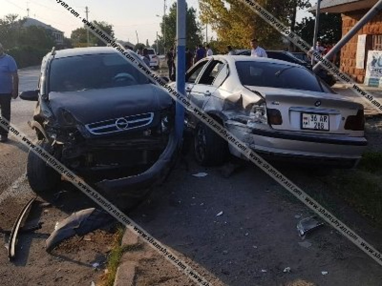 Մխչյանի գյուղապետարանի դիմաց բախվել են BMW-ն ու Opel-ը. վերջիններս հայտնվել են մայթին, կա վիրավոր