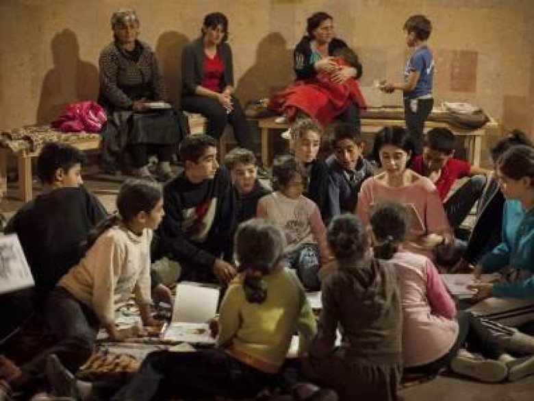 Իսկ լուսանկարում Ստեփանակերտի ռմբապաստարաններից մեկում հավաքված փոքրիկներն են ուսուցչուհու հետ դաս սովորելիս: