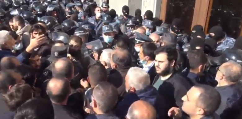 Քաղաքացիները վանկարկում են «Նիկոլ՝ դավաճան», «Նիկոլ, հեռացիր» և ոստիկաններին հորդորում են միանալ իրենց: