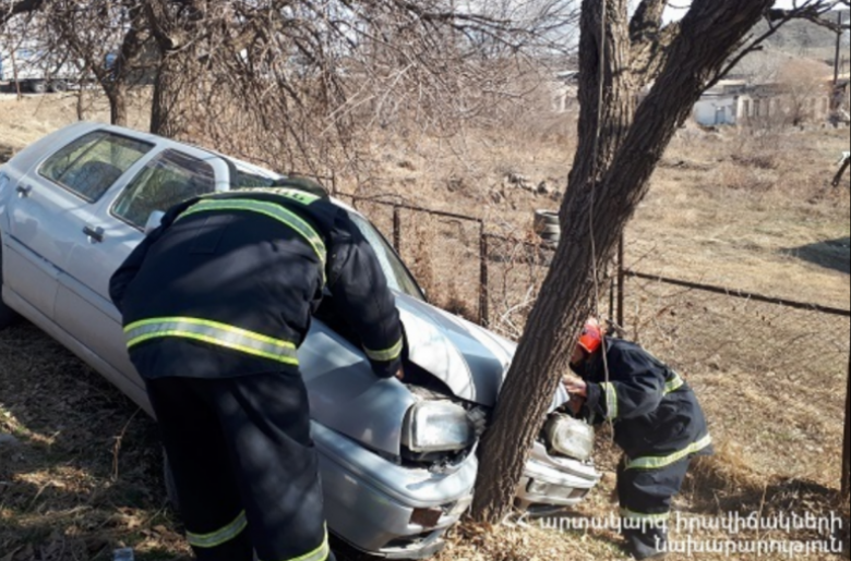 Պարզվել է, որ Երևան-Մեղրի ավտոճանապարհի մոտ 121-րդ կմ-ին «Volkswagen Golf» մակնիշի ավտոմեքենան (վարորդ՝ Ս․ Ս․, ծնված 1951 թ.) դուրս է եկել ճանապարհի երթևեկելի հատվածից և բախվել ծառին․ տուժածներ չկան: